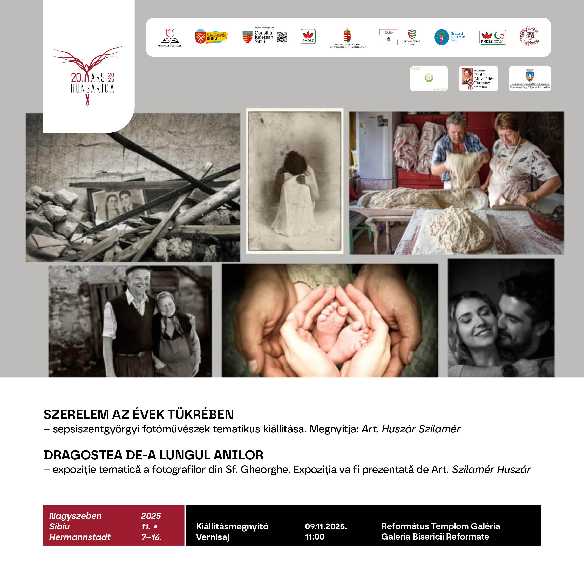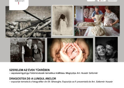 11 órakor a Református Templom Galériában nyílik meg a Szerelem az évek tükrében című kiállítás, amelyet sepsiszentgyörgyi fotóművészek alkotásaiból állítottak össze a fesztiválra. A tárlat a szerelem változó, mégis örök arcait mutatja be, a fiatalos szenvedélytől az időskor békés szeretetéig. A fotókiállítás anyaga mélyen tükrözi két ember kapcsolatát a kezdetektől a befejezésig, miközben a székely néphagyományok és az Istenbe vetett hit is visszaköszönnek. A kiállítást Art. Huszár Szilamér mutatja be.