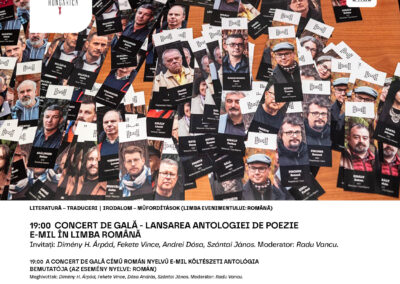Az est folytatásaként 19 órától a fordításokról, a magyar és a román nyelv közötti átjárásról lesz szó. Az Erdélyi Magyar Írók Ligája (E-MIL) egy reprezentatív román nyelvű versantológiával tiszteleg. A Concert de gală című antológiában 30 kortárs magyar költő, mind az E-MIL tagjai, mutatkozik be román nyelven. Meghívottak: Dimény H. Árpád, Fekete Vince, Dósa András, Szántai János, moderátor pedig Radu Vancu nagyszebeni író, költő.