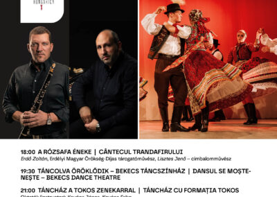 November 15-én, szombaton, a Magyar Szórvány Napját ünnepe. Ez alkalommal a Rózsafa éneke című, Hungarikum-előadást nézheti meg a közönség 18 órától a Thalia Díszteremben. A műsorban Erdő Zoltán tárogatóművész és Lisztes Jenő cimbalomművész lépnek színpadra. Ezt követően, 19:30-tól a Bekecs Táncszínház Táncolva öröklődik című előadása viszi tovább a népi örökség és a közösségi összetartozás üzenetét. Az ünnepi napot 21 órától Táncház zárja a Tokos Zenekarral, ahol Kovács János és Kovács Erika vezetik a táncot.
